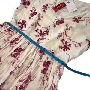 Brand new, with tags. How pretty is this dress?! Beautiful white with red florals. The fabric has little tiny dots in white throughou the dress almost giving it a polka dot look in the background. Top has little white buttons and is lined. Sleeves are gathered at the top providing a flowy look. Elastic waist. 2 layered ruffle skirt with contrasting floral prints. Lightweight and perfect for the cottagecore, cowgirl, shabby chic style.
