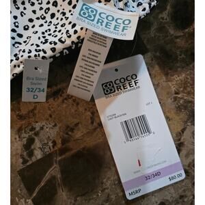 This NWT Coco Reef Bra Sized Twist Reversible Underwire Bikini Top is a fabulous addition to your swimwear collection! The reversible design, featuring classic black and white, offers versatile styling options for any beach day. The underwire provides excellent support, and the twist front adds a touch of elegance. Don't miss out on this must-have bikini top!
