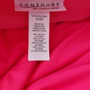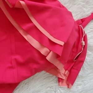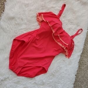 Beautiful hibiscus color with light pink ruffle layer. Removable straps and lightly padded moulded cups. New without tags.