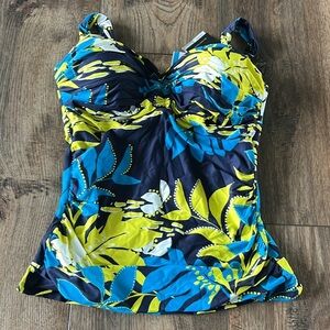 NWT Coco Reef Tankini Floral Top Size 36 C Rollover Bottom Size Medium High Rise