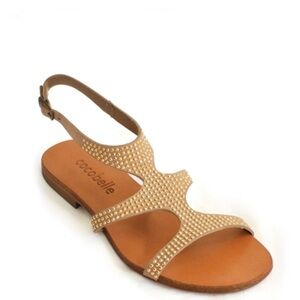 NWT Cocobelle Venus Gold Studded Tan Leather Resort Flat Sandals Size 6