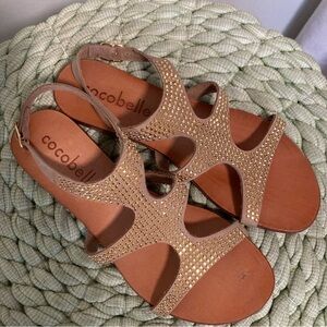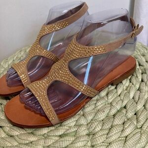 NWOB Cocobelle Venus Gold Studded Tan Leather Resort Studded Flat Sandals