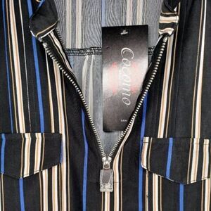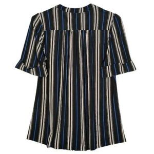 NWT Cocomo Plus Size 2X Black Multi Color Stripe Print Pintuck Short Sleeve Top