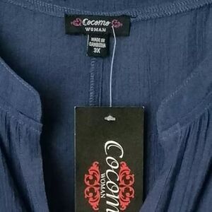 NWT Cocomo Plus Size 3X Navy Blue Solid Pintuck Short Flutter Sleeve Top