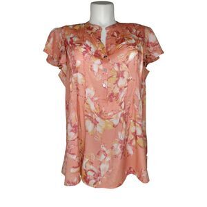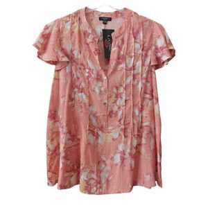 NWT Cocomo Plus Size 3X Pink Multicolor Floral Pintuck Flutter Short Sleeve Top