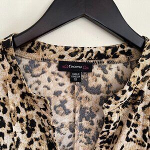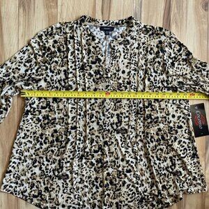 NWT Cocomo Soft Stretch Brown Black Animal (leopard or cheetah) Print Knit Tunic Blouse Size 1X