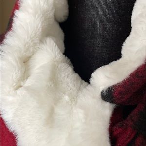 NWT Coffee Shop New York zip jacket. Size small. Has side pockets. Red and black plaid with creamy white accents and silver hardware.