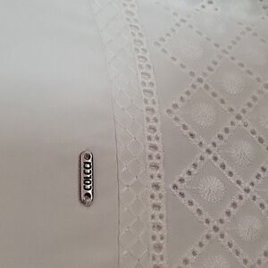 NWT Colcci Jeanswear Cream Embroidered HI/LOW Spagetti Strap Dress Womens Size L
