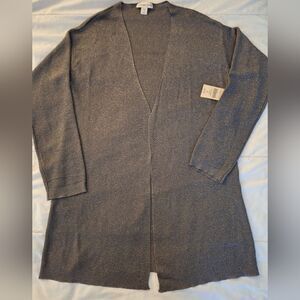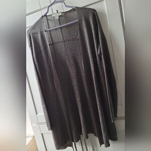 NWT Coldwater Creek Medium, silver gray, open metallic sweater, long sleeve, semi sheer, light knit, 32" long, rayon, polyester