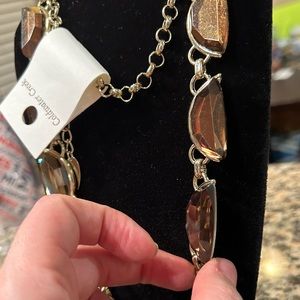 NWT Coldwater Creek 32” Bronze Crystal Crescent Gem Chunky Long Necklace!
