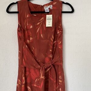 NWT Coldwater Creek Dress 10 Petite Red Spice Batik Silk Midi Tropical Vacation