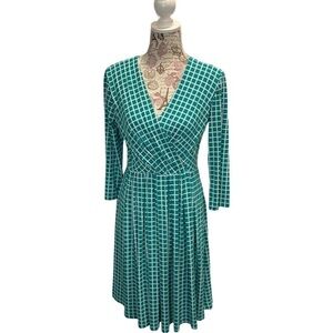 NWT Coldwater Creek Faux Wrap Mini Checks Dress with 3/4 Length Sleeves Size 6