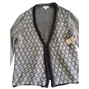 NWT Coldwater Creek Houndstooth Sweater Jacket Womens 1X Gray Alpaca Mohair Wool