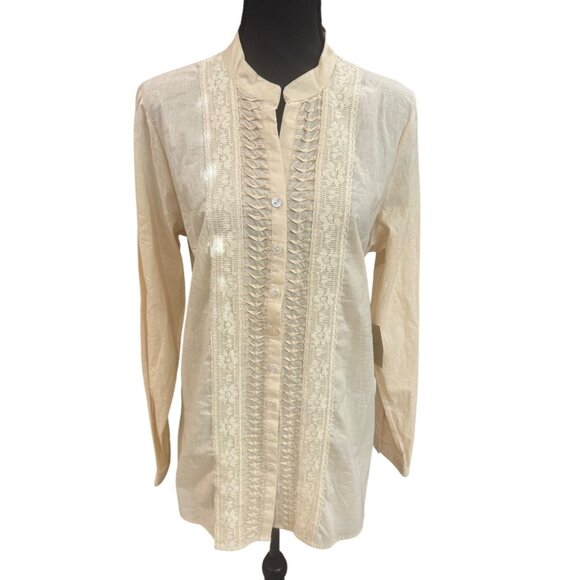 NWT Coldwater Creek Ivory Cottage Peasant Romantic Embroidered Lace Tunic Top L