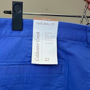 These new with tags cropped pants from Coldwater Creek sit at the waist and are slightly shaped through the hips and thighs. They are natural fit and cropped.