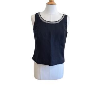 NWT Coldwater Creek Navy Linen Blend Embroidered Blazer / Jacket & Tank Set, 8