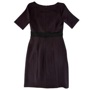 coldwater creek dress, sheath dress 4, colorblock dress, plum cocktail dress, modest formalwear, short sleeve event dress, NWT women’s dress, classic sheath, tailored purple dress, women’s workwear dress, elegant wedding guest dress, brunch dress fall, chic dinner party dress, church appropriate dress, black waistband dress, formal colorblock, plum office dress, structured cocktail dress, gallery opening outfit, rich jewel tones, mod vintage inspired