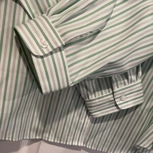 NWT Coldwater Creek Size 18 Sage Green White Stripe Button Down Shirt Cotton