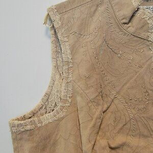 NWT Coldwater Creek Vest Size 1X Women's Leather Lace and Knit Tan NEW READ DESC