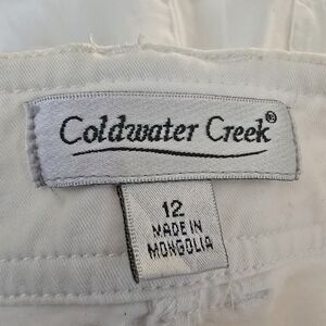 NWT Coldwater Creek White Capri Pants Cotton/Spandex Back Pockets Size 12. These aren't stark white, they are a little creamy. Two front slant pockets. Two back buttoned pockets.