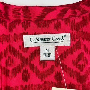 NWT Coldwater Creek Women's Sz L Petite Top Red With Grey Geometric Patterns