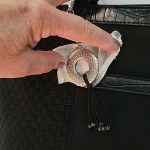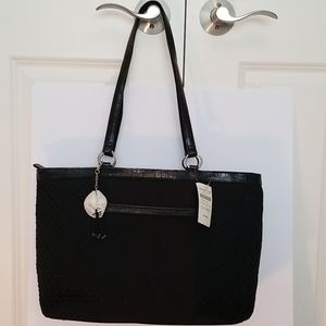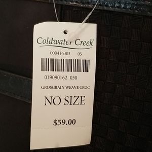 NWT Coldwater Creek black grosgrain weave croc shoulder bag. 2 exterior pockets, zip top, credit card holders, 3 interior pockets. Removable tassel medallion chain. 13 inches wide, 10 1/2 inches tall, 5 inches deep. 11 inches handle drop. Non-smoking home.