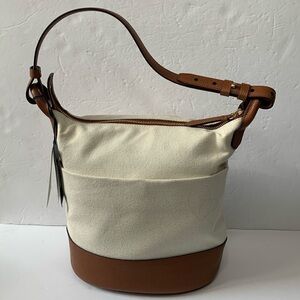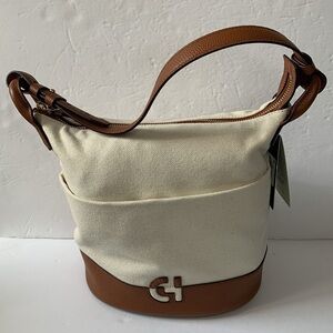 Cole Haan Essential Soft Canvas & Leather Bucket Bag Color Natural/British Tan