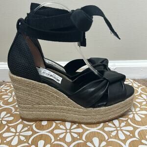 NWT Cole Haan Cloudfeel Hampton ankle tie espadrille wedge sandal in Black, 8.5
