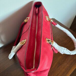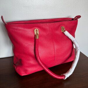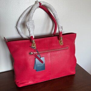 NWT Cole Haan Leather Zippered Shoulder Tote with Gold Hardware - fashionable and functional, large enough yet Lightweight