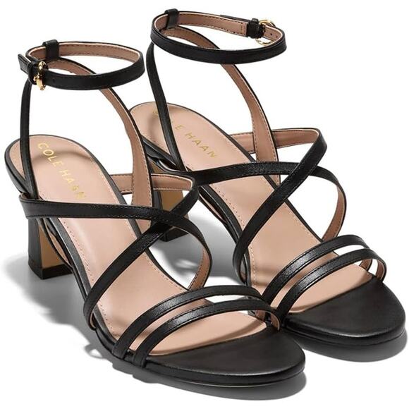 NWT Cole Haan Women's Addie Strappy Sandals Heeled, Black Leather-Size 9.5