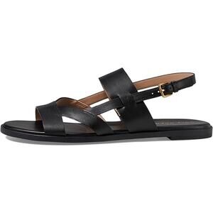 The Cole Haan Women's Fawn Flat Sandal in black leather is a stylish and comfortable footwear option, featuring a sleek, minimalist design with a cushioned footbed for all-day comfort. It has a versatile, casual look suitable for various occasions, with a secure fit and a modern, chic silhouette. Available in size 5.