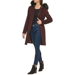 NWT Cole Haan Women's Hooded Coat Slick Wool Detatchable Faux Fur Trim- Women 8