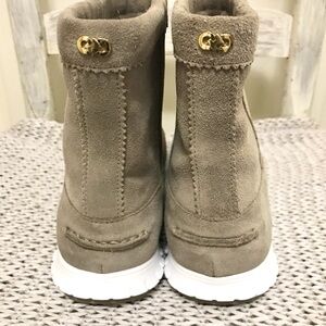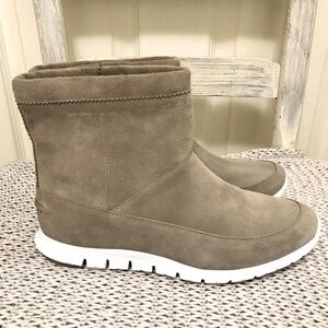 Cole Haan Zerogrand booties are NWT. A lightweight waterproof bootie with full leather suede uppers in taupe. Easy pull-on styling with side elasticized gusset. Smoke free home.