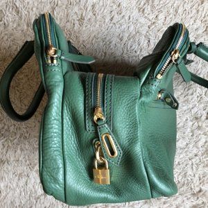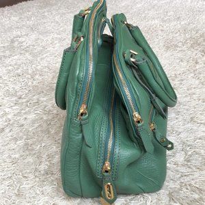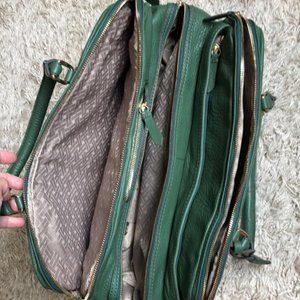 NWT Cole Haan small travel duffle bag Lovely frosted emerald green pebbled leather with gold hardware and taupe lining Zippers and pockets galore! This is such a nice bag to take on an overnight trip - with all those pockets you can keep shoes, toiletries, clothing separate Small enough to carry on a flight A unique bag in fabulous condition!