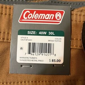 NWT Coleman Brown Canvas Utility fleece lined Pants 40x30