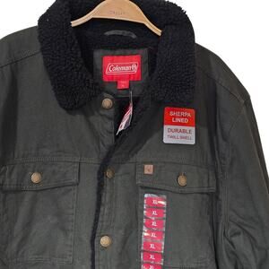 NWT Coleman XL Fleece Lined Button Up Jacket Hunter Green Black Fleece Collar Work Wear