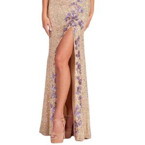 NWT Colette CL2049 Stretch Sequin Prom Dress Gold Lilac Size 10