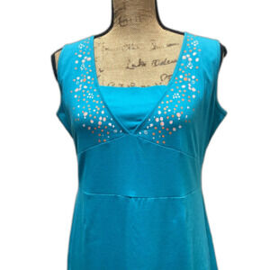 NWT Coline Artsy Sleeveless Dress Teal Blue Y2K Cotton Stretch Size Large