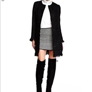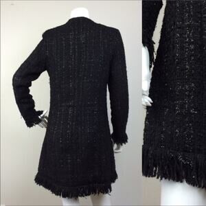 NWT Collarless Black Knee Length Boucle Coat