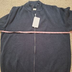 The NWT Collars & Co. Men's Blue Full Zip Ribbed Cotton Cardigan Sweater in size 2XL is a stylish and versatile piece for the colder seasons. Made from cozy cotton knit fabric, this solid blue sweater features a classic long sleeve cardigan style that is perfect for casual occasions. Machine washable for easy care, this sweater is great for walking and can be worn in winter, fall, or spring. The brand's attention to detail and quality construction make it a great addition to any man's wardrobe.