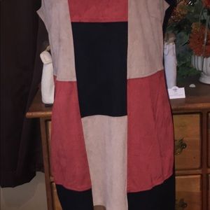 NWT Beautiful Sleeveless Dress. Silky soft suede like material. Size 12. Rust, tan and black. Keyhole back, round Neckline.