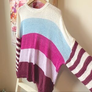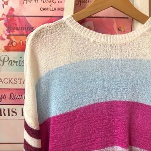 Davi & Dani Multi-Color Stripe Sheer Colorblock Slouchy Lightweight Boyfriend Pullover Sweatshirt Top