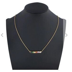NWT - Colorful Cubic Zirconia Baguette Bar Silver Plated Necklace - 18”