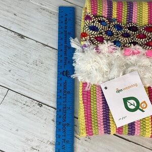NWT Colorful Handmade Woven Fringed Boho Clutch