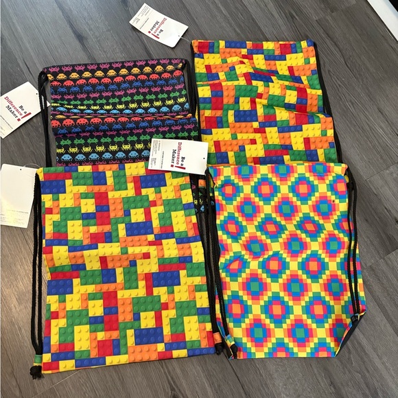 Brighten up your child's day with this set of colorful drawstring bags. Perfect for school or play, these bags feature vibrant patterns that kids will love.
