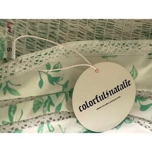 NWT Colorful Natalie White Green V-neckline Short Sleeves Mini Dress Size Small