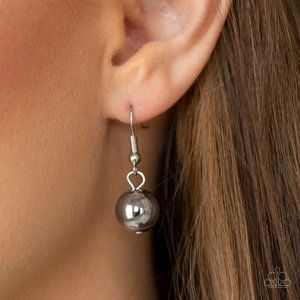 Black misshape beads with blue chrome splatter look and detailed multi look and multi shape silver beads. Comes with matching fishhook earrings.