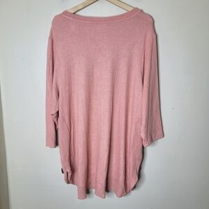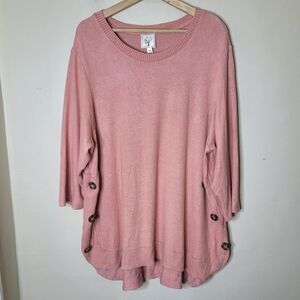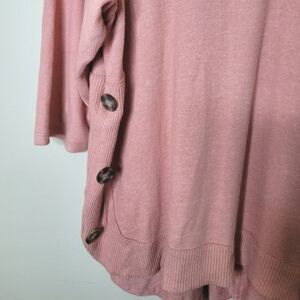 New with tags Colortree tunic sweater in a soft rose pink hue. Designed with side button details, a relaxed drape, and a rounded hem for a flattering, feminine fit. Lightweight and cozy — perfect for casual days, layering, or a relaxed lagenlook style.