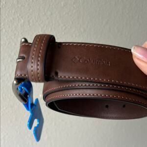 Elevate your style with the Columbia brown leather belt. Perfect for any occasion, this belt combines durability with classic design.