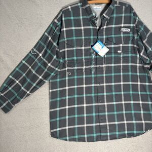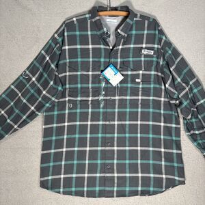 NWT Columbia L PFG Tamiami II Flannel Shirt Jacket Button Up Plaid Fleece Lined
